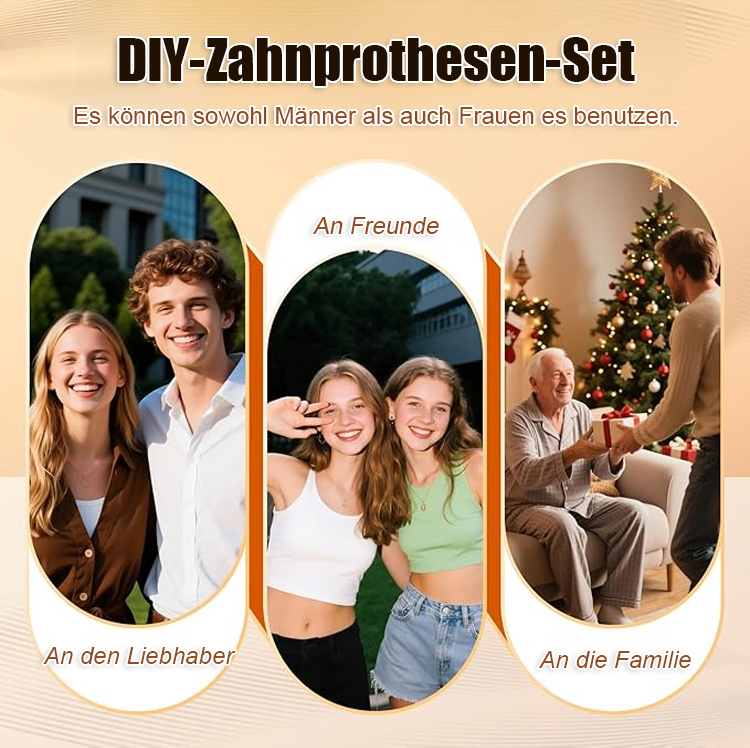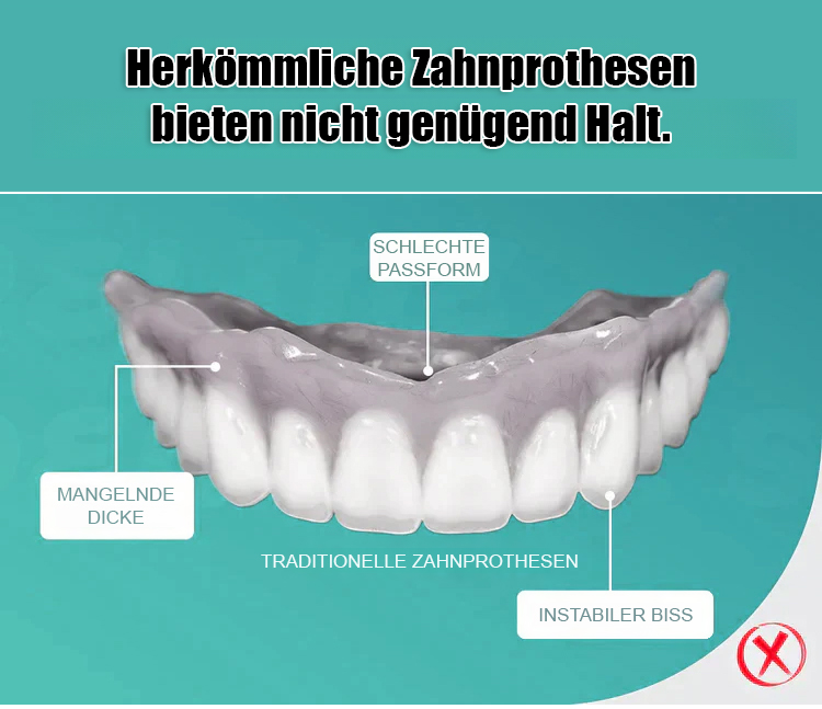 Natürlicher als echte Zähne! 1-Sekunden-Anpassung, 48 Stunden lang sicherer Halt. Der gebiß-dekorationsanzug passt sich bequem an