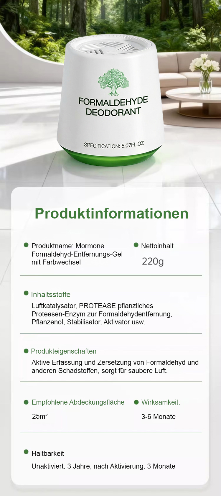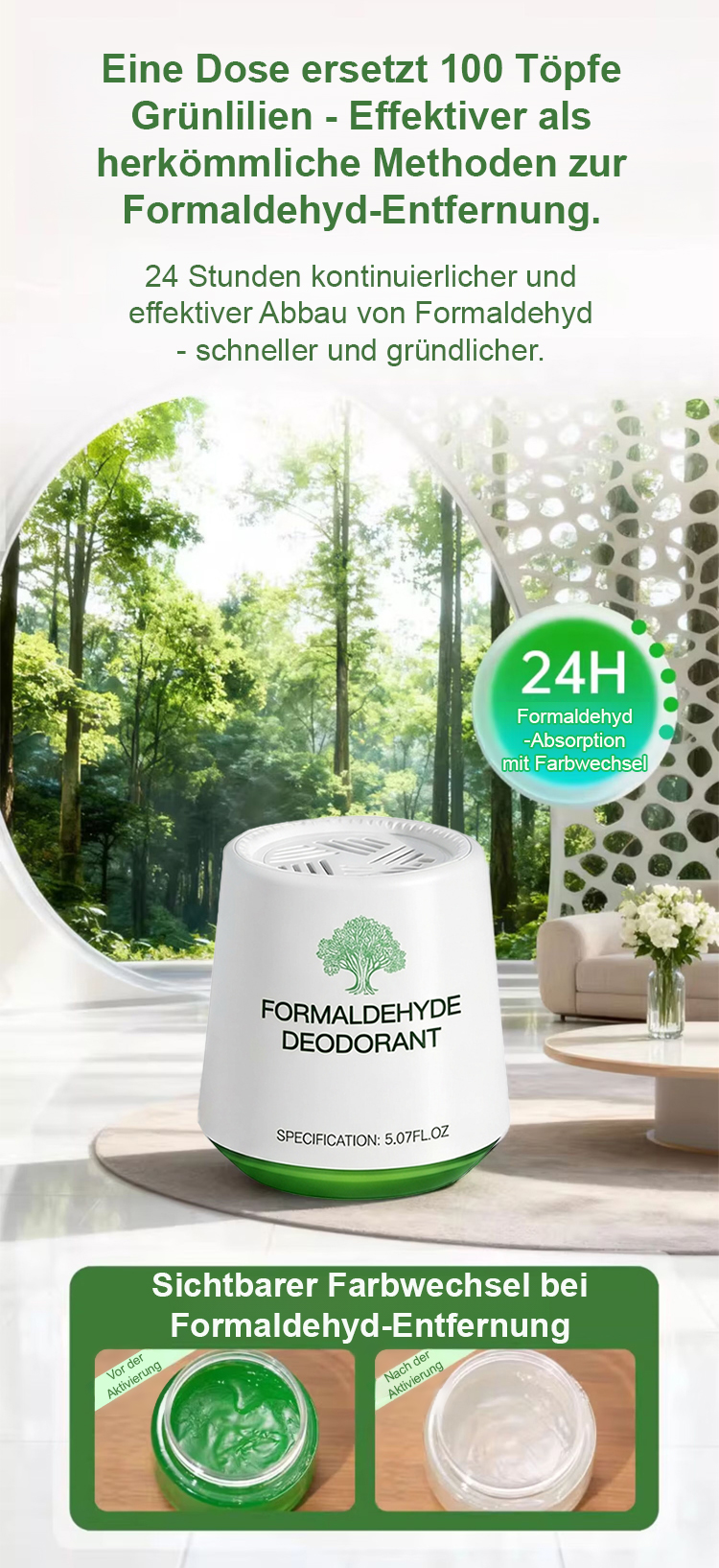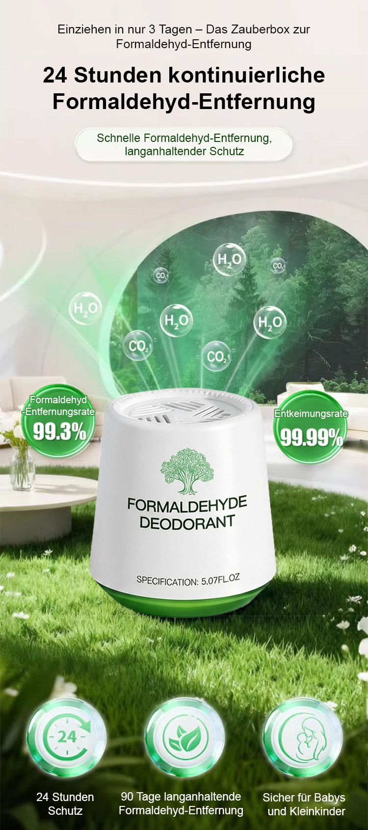 🔬TÜV-geprüft: 99,93% Formaldehyd-Abbau gemäß EN ISO 16000-23.